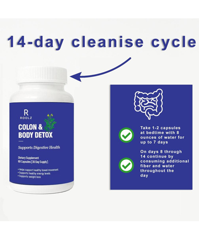 Colon & Body Detox Complex is unique formula and premium herbal blend to help gut regularity bowel movement & body detox cleanse; the laxatives herbs help support a full colon cleanse detox. Enjoy the benefits of a full body cleanse and detox just in 14 days.